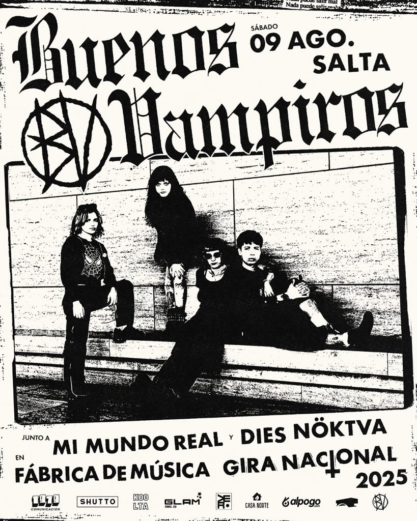 Buenos Vampiros vuelve al NOA como parte de su “Gira Nacional 2025”, y Salta tendrá su fecha especial en la Fabrica de Música el proximo Sabado 9 de Agosto. Desde las 22 hrs, junto a Mi Mundo Real (Jujuy) y los locales Dies Noktva. Anticipadas en https://alpogo.com/evento/buenos-vampiros-en-salta-21059