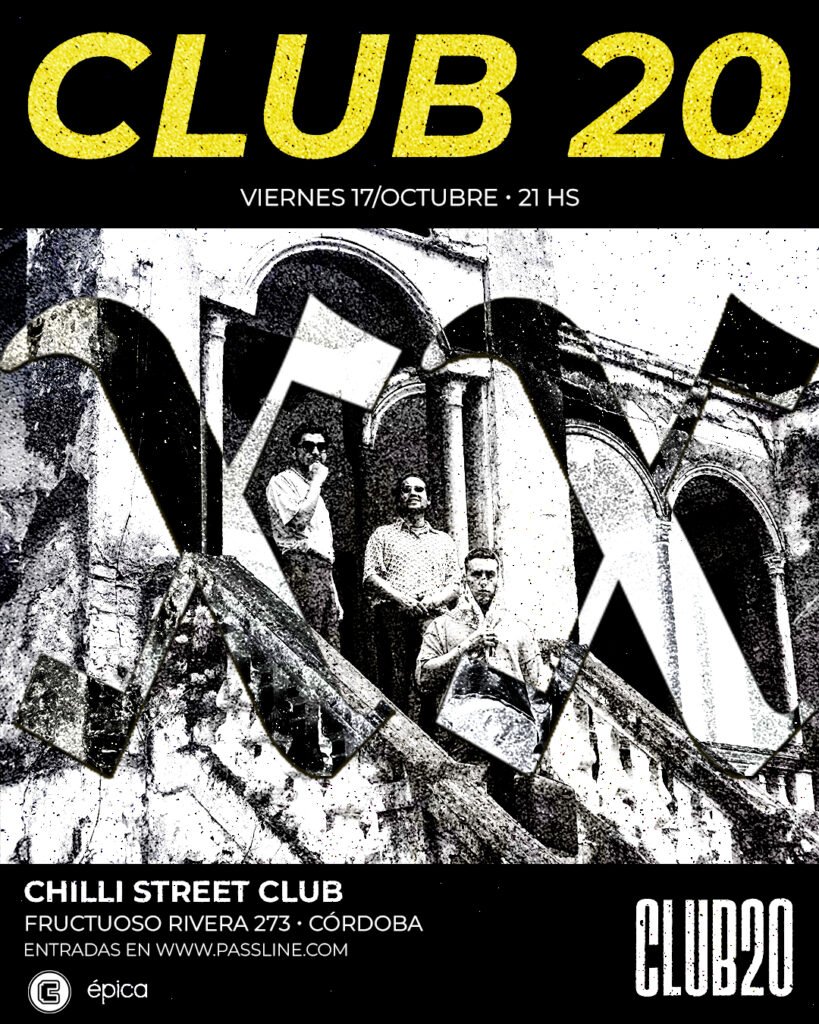 La banda salteña CLUB 20, estandarte del pop urbano, llega a Córdoba por tercera vez el viernes 17 de octubre. Tras su paso previo por el Folkin Fest y el Festi Soul de la ciudad universitaria, en esta ocasión el show propio será en el escenario de Chilli Street Club, a partir de las 21 hrs. Las entradas se encuentran disponibles en passline.com