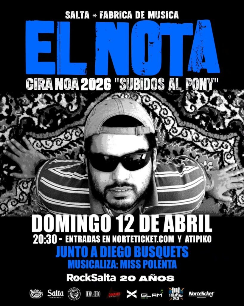 El Nota y su banda llegarán a la Ciudad de Salta este domingo 12 abril. Presentará Subidos al pony, su elogiado primer disco oficial. En él supo condensar su sensibilidad particular y humor, una mirada sensible sobre un mundo áspero.