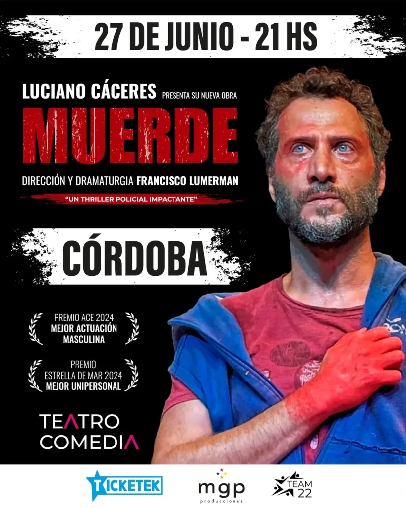 La Subsecretaría de Cultura invita a disfrutar del unipersonal “Muerde”, que se presentará a las 21:00 en el Teatro Comedia (Rivadavia 254), con la actuación de Luciano Cáceres y texto y dirección de Francisco Lumerman.