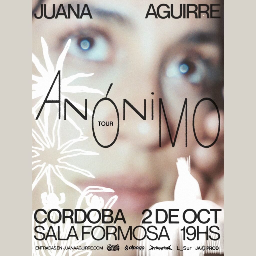 Juana Aguirre se presenta en Sala Formosa como parte del Anónimo Tour, el próximo jueves 2/10, desde las 20 hrs. Produce GRL PWR. CONSEGUÍ TU ANTICIPADA EN https://alpogo.com/evento/juana-aguirre-en-cordoba-21120